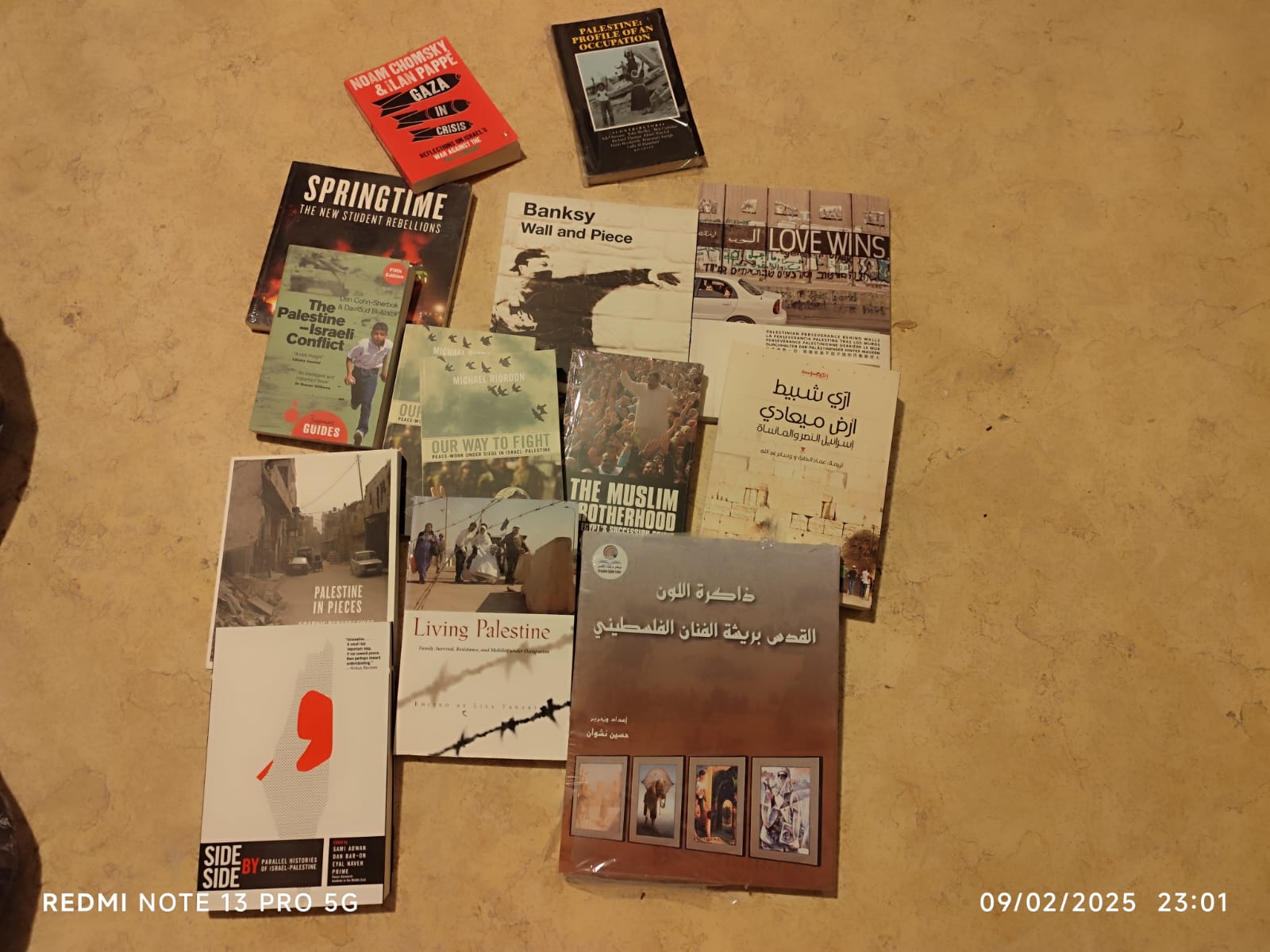 On March 11, Israeli police raided the Educational Bookshop for the second time in a month, detaining co-owner Imad Muna and seizing around 50 books. Officers allegedly targeted books with Palestinian flags or titles mentioning Palestine, using Google Translate to examine them. Among the seized books were works by Banksy, Ilan Pappé, and Noam Chomsky.
