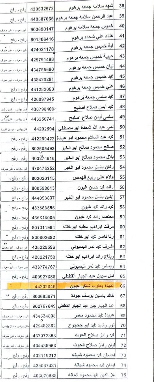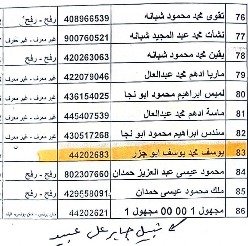 Names of the martyrs brought to Al-Awda Hospital (Nuseirat):