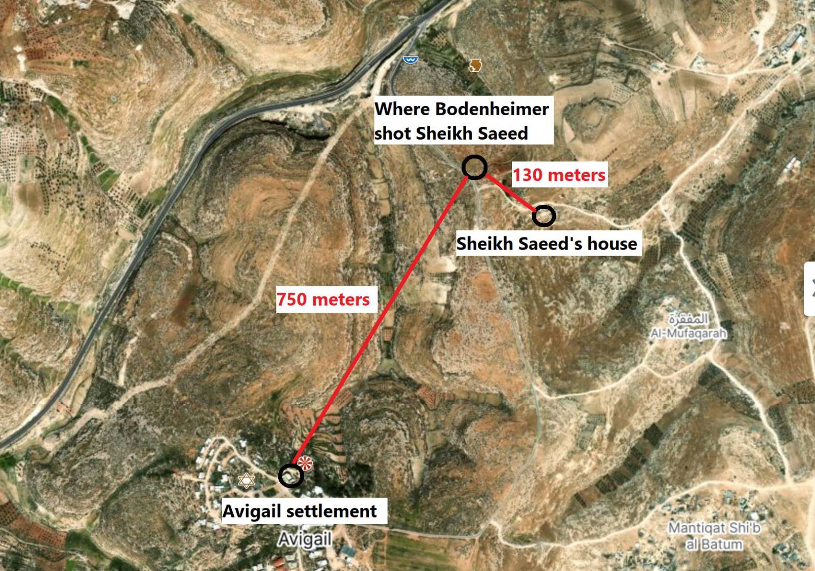 Today, Bodenheimer returned again to the area where the incident occurred, near Saeed’s home. Apparently, it was not enough for him, and he wants to continue making Saeed’s family’s life miserable as they are still processing the fresh trauma and new reality forced upon them. Apparently, the attacker also wanted to remind them that he is there at any given moment, that he is free and can continue to harm them as much as he wants, with the assistance and protection of the apartheid regime.