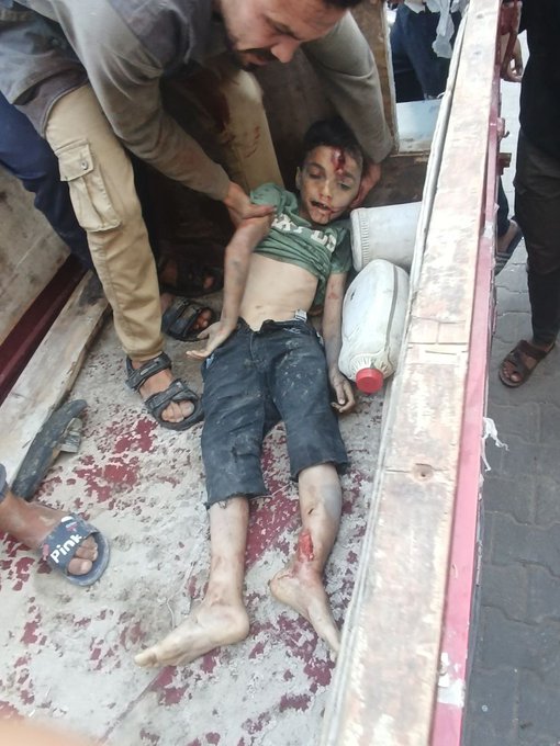 Around 10:20 pm, a second Israeli airstrike targeted the the Abu Hamisa North School. The IDF had warned that it would strike the adjacent Ibad al-Rahman mosque. As such, displaced people sheltering in the mosque moved to the northern school, only to be bombed by the Israeli army there. Al-Awda Al-Nusseirat hospital receives 14 dead bodies, including 9 children.