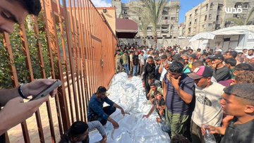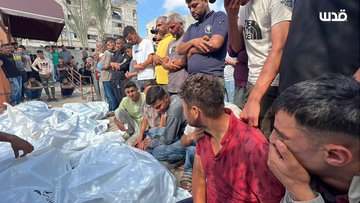 Around 8 am, an Israeli drone airstrike targeted displacement tents at Al-Hinnawi school in Khan Younis, which sheltered displaced Palestinians, killing 14 people.