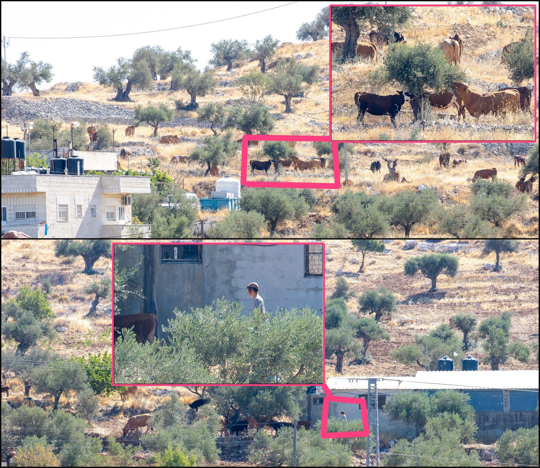 In a scene that has become provocatively routine, settlers continue to graze their cattle in Taybeh’s agricultural lands, including family-owned fields and areas near residential homes, without deterrence or intervention from the authorities. These violations go beyond provocation; they cause direct harm to olive trees – a vital source of livelihood for the people of Taybeh – and prevent farmers from accessing and cultivating their land.