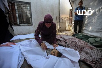 A young man who was seen mourning children killed spoke tp Palestine Today TV saying that his family's tent was struck with two rockets while they were baking bread. He lost 3 children, along with his brother and his fiancée, his sister and her husband, another brother and his grandmother.