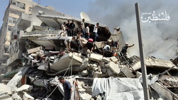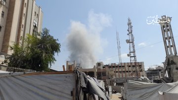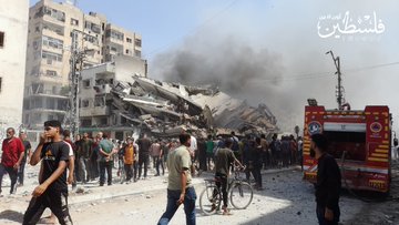 Around 12:30 pm, an Israeli airstrike targeted the Al-Shawwa residential building which also housed a center of the The Palestinian Medical Relief Society (PRMS) at Al-Samer intersection in central Gaza City.