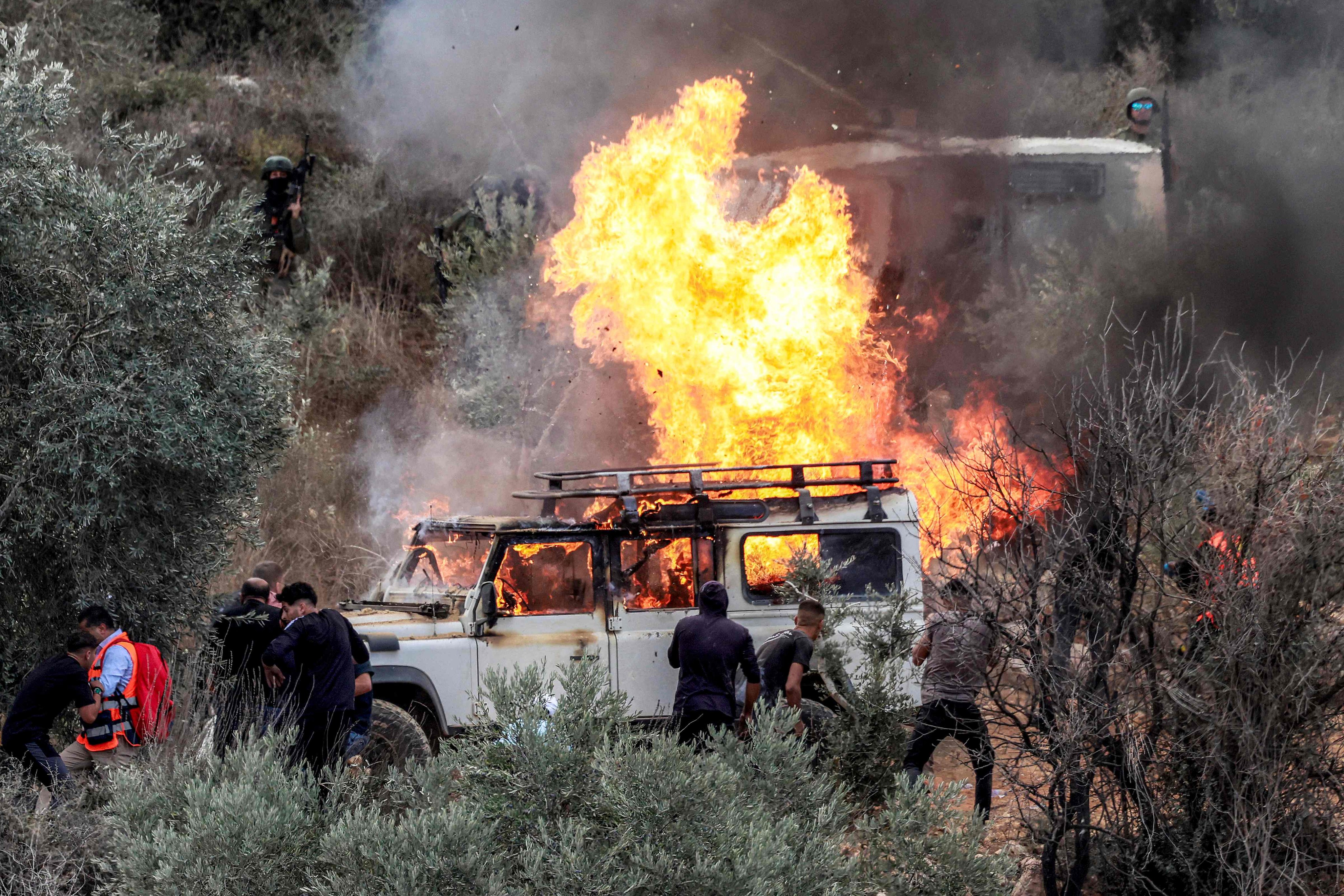 After the settlers’ attack, Israeli occupation forces arrested six young men after raiding the area where they were harvesting olives in the village of Kafr Ni'ma, west of Ramallah.