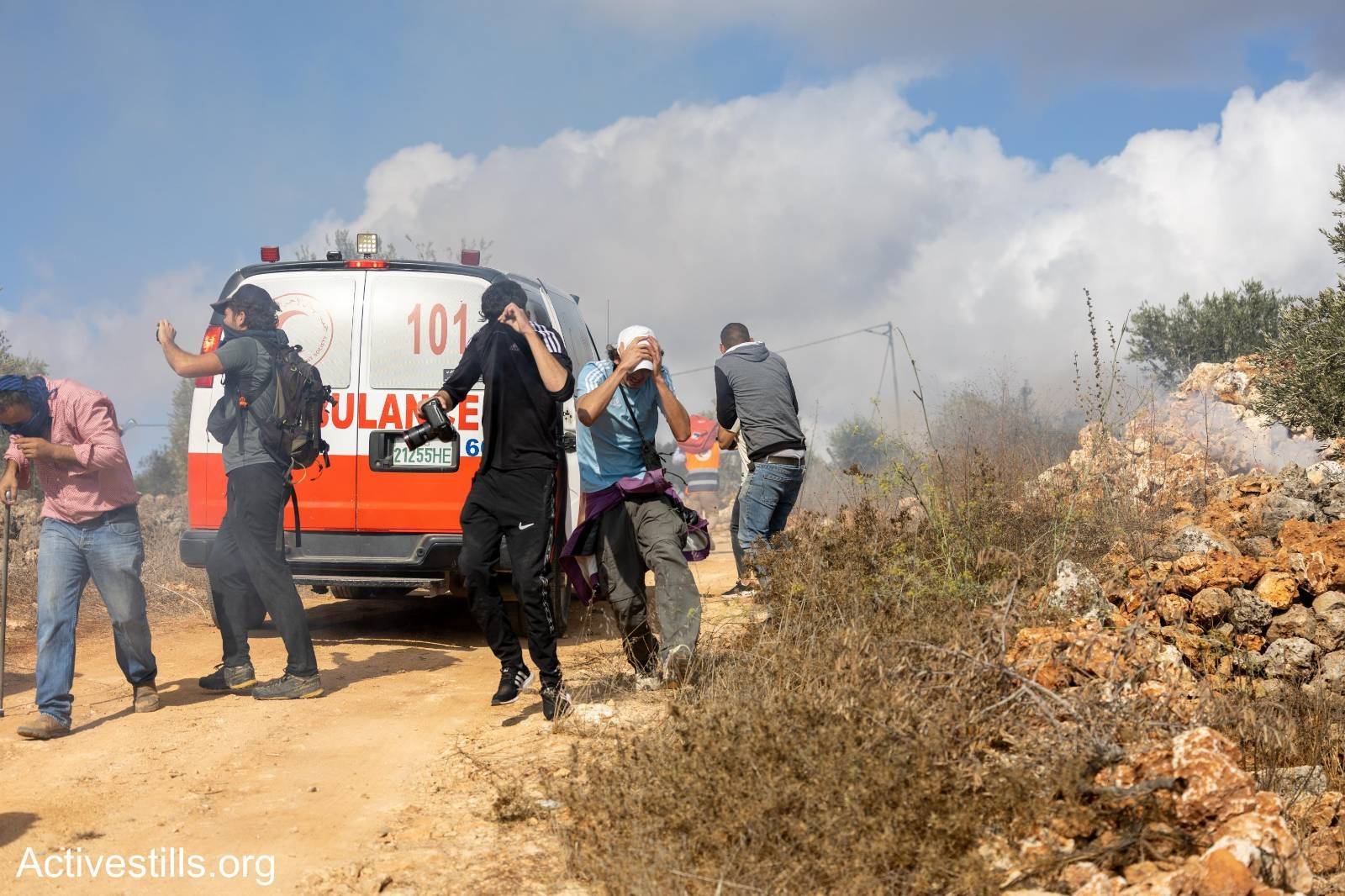 Shortly after midday, two groups of Israeli settlers armed with sticks and stones -- numbering around 70 people in total -- attacked the olive pickers and journalists at the scene in the village of Beita. Israeli troops, who were escorting the settlers during the attack, fired tear gas grenades and stun bombs at the Palestinian farmers; Dozens of settlers, armed with iron bars, brutally beat farmers as well as journalists and international solidarity activists.