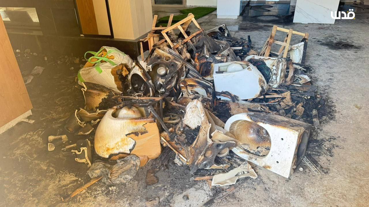 Dozen of settlers stormed the mountain and ignited the fires in the six villas, which belong to Palestinian citizen Khalil Abu Sneina and several partners.