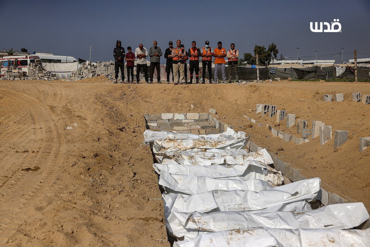 In a new crime, the “Israeli” occupation army violated the dignity of the bodies of 89 martyrs of our Palestinian people, which the occupation had previously stolen during the crime of genocide, as it handed over their bodies as skeletons and decomposing bodies, in behavior that shames humanity. In today’s crime against these bodies, the occupation handed over these martyrs in only 35 shrouds, including 13 bodies that they placed in one shroud, and 22 bodies in another shroud, and the rest of the martyrs’ bodies were scattered in several shrouds in a way that was humiliating and degrading the dignity of the martyrs. Over the course of 304 days of the crime of genocide, the occupation had kidnapped more than 2,000 bodies of martyrs and dead from dozens of cemeteries in the governorates of the Gaza Strip, which the occupation bulldozed with bulldozers and military vehicles and turned over their graves, in a scene contrary to humanity and human feeling. The "Israeli" occupation repeated this crime more than once during the genocidal war. It had also previously exhumed graves in Khan Yunis, Jabalia, and Hay al-Tuffah and stole some of the bodies of the martyrs from them. In addition, it still has dozens of bodies in its possession, and it is necessary to remove the bodies and move them to unknown places and change. It is considered a war crime and a crime against humanity and is punishable by international legislation. We condemn in the strongest terms the occupation’s perpetration of this crime that humanity deplores, and we call on international and international organizations to condemn these heinous, brutal crimes. This new crime against humanity is added to a series of crimes committed by the “Israeli” occupation army after the United States of America gave it the green light to carry out killings against civilians, children and women. We hold the occupation and the American administration fully responsible for these crimes, and we demand the formation of an independent international investigation committee. Exactly in the occupation army kidnapping the bodies of the martyrs and stealing their vital organs." source