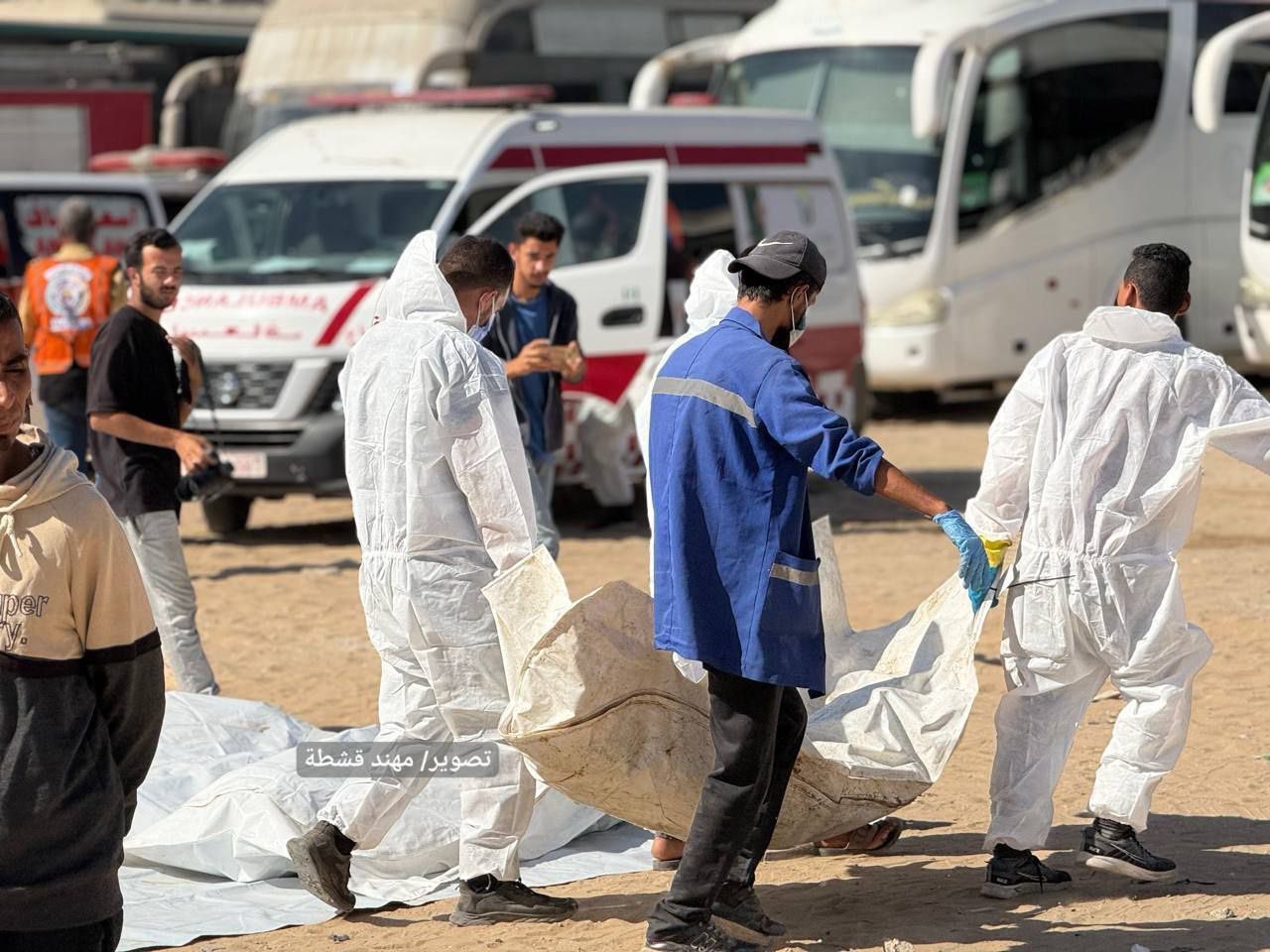 “We have received 315 bodies so far, and only 89 of them have been identified through clothing or a wedding ring or simple markings. Yesterday, we received a new body that had been mauled by trained predatory dogs, and the marks of the attack were clearly visible. Some bodies arrived without heads, some were crushed under military bulldozers, and some were found with their hands tied and eyes blindfolded, with close-range gunshot wounds to the head and chest. There is also clear evidence of organ theft through precise surgical incisions, with the heart, liver, kidneys, and corneas removed. We buried 182 bodies in a mass grave after taking samples as much as our limited resources allowed. We requested cooling facilities from the Red Cross, and they brought us refrigerators used for fish, which we were forced to use temporarily to preserve the dignity of the bodies and allow families time to identify them. International investigation committees must be activated to hold the occupation accountable, identify the unknown, and document these crimes in a legally recognized manner.” source