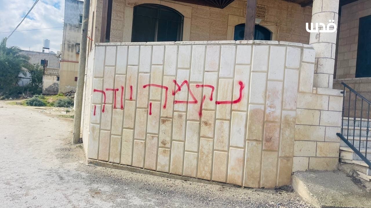 In Jalud, southeast of Nablus, dozens of armed and masked Israeli settlers raided the villages and carried out arson attacks. The attackers also burned four vehicles, three of which were completely destroyed. Israeli settlers spray-painted hostile graffiti on a mosque and a home in the village of Jalud, southeast of Nablus.