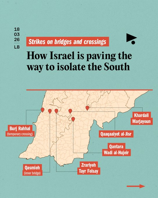 "Israel has struck the Qasmiya Bridge over the Litani River in southern Lebanon, one of the last major crossings on the coastal highway. This is not just another “military target.” The Qasmiya Bridge is a key civilian artery linking southern Lebanon to the rest of the country. Cut it, & you isolate entire communities, restricting movement of civilians, ambulances, aid, & daily life. Southern Lebanon is one of the country’s main agricultural regions. Citrus groves, vineyards, orchards, & farms supply Beirut & beyond. Cut the crossings, & you don’t just isolate people, you disrupt food supply chains. The Litani River has long been treated as a strategic line. Striking bridges along it reinforces that divide، physically & operationally. This is not just about targeting. It is about shaping geography. Over one million Lebanese remain displaced. Entire villages have been flattened. And within the past 48 hours, Israeli voices have openly discussed expansion south of the Litani, including permanent settlements. At the same time, settler-linked groups tied to Uri Tzafon are already advertising properties in southern Lebanon for sale. Treating the land as if it is already theirs. 7/ Destroying bridges does not just target armed groups. It isolates populations, disrupts livelihoods, & prepares the ground. This is how a “temporary buffer zone” begins to look permanent. Lebanon’s President condemned the strike on the Qasmiya Bridge, calling it a dangerous escalation & a blatant violation of Lebanon’s sovereignty. He warns that targeting bridges over the Litani aims to sever geographic connectivity between the south & the rest of the country, & forms part of plans to impose a buffer zone & entrench occupation. This is how a buffer zone becomes a border"