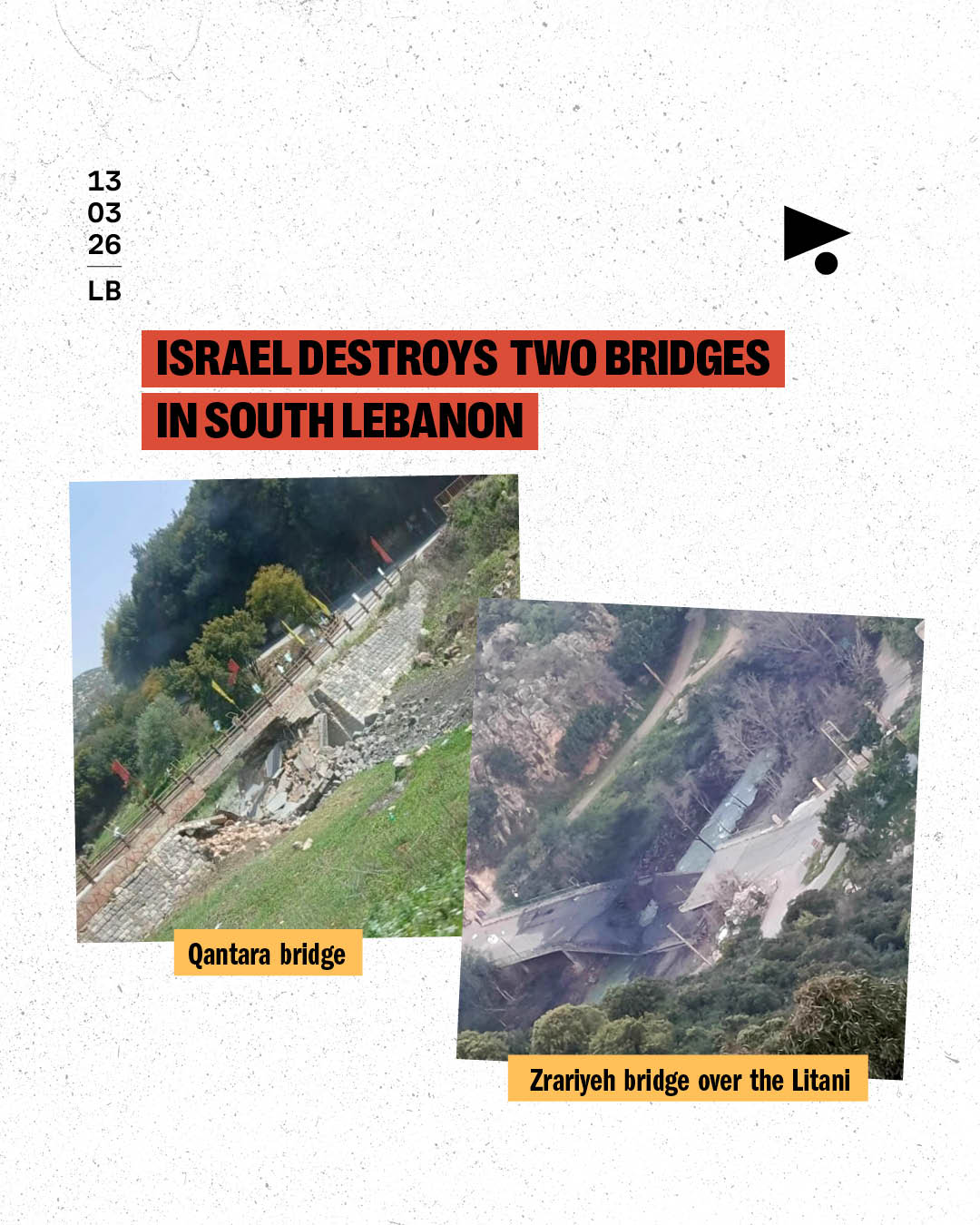 On Wednesday March 18, the Israeli army spokesperson announced strikes on Litani River crossings, claiming the need to prevent Hezbollah from moving weapons. So far, the Qaaqaaiyeh bridge, the inner bridge in Qasmieh and the temporary crossing in Burj Rahhal have been targeted.