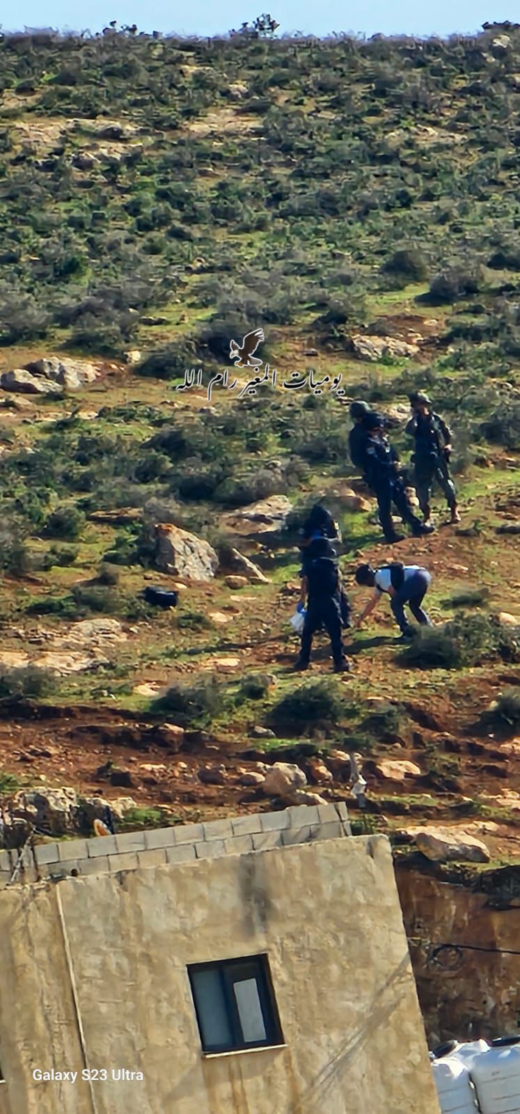 At 12:30, a group of settlers attacked the boys’ school in the village of Al-Mughayir and opened fire on citizens as they were trying to reach the school to evacuate students, as well as toward the school classrooms, which led to the death of two citizens (one of whom was a child student) and the wounding of three citizens.